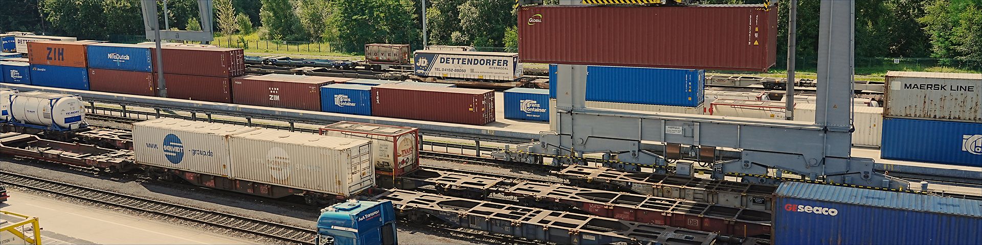 Wenn ein Container zwischen LKW und Schiene „umsteigen“ soll, ist dies das Spezialgebiet der DUSS. Dies ist die „Deutsche Umschlaggesellschaft Schiene-Straße“. Als Tochter der DB InfraGO ist die DUSS mit ihren Terminals auf diese Verladung von Gütern spezialisiert: „Wir setzen Ladeinheiten vom LKW auf die Schiene und wieder zurück, wir bringen die Güter wirklich auf die Schiene“, erklärt Katrin Altmann, die bei DUSS für das Betriebsleitsystem „BLU“ verantwortlich ist. In über 20 Umschlagterminals lädt das Unternehmen jedes Jahr über zwei Millionen sogenannte „Ladeeinheiten“ um. Dies sind vor allem Schiffscontainer oder LKW-Auflieger, die einen Teil ihrer Reise klimafreundlich auf einem Güterzug hinter sich bringen.