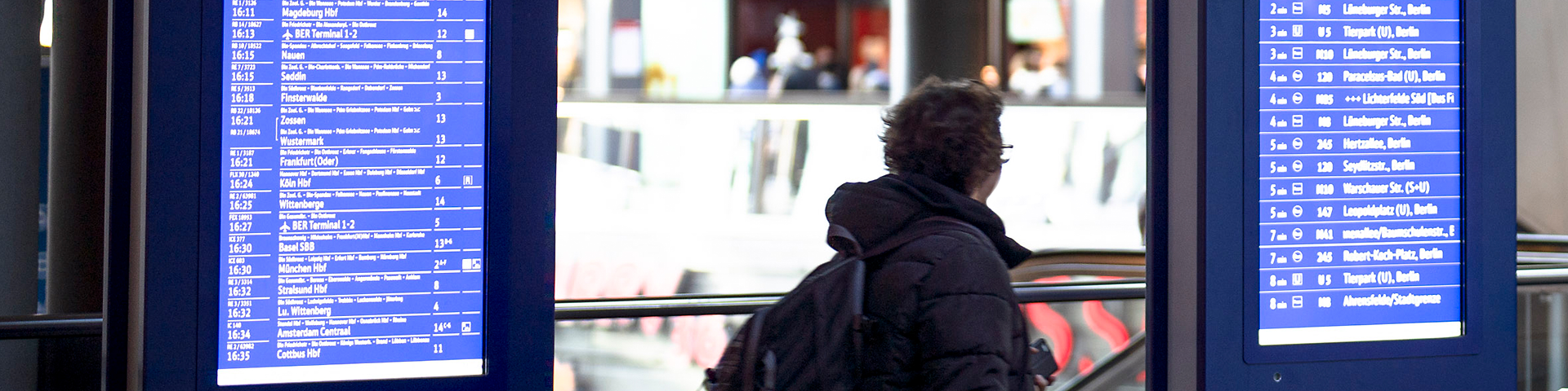 Die Reiseplanung unserer Fahrgäste geht heute weit über reine Abfahrtszeiten und analoge Bahnsteigpläne hinaus. Reisende möchten alle Unsicherheiten vor und während der Reise klären: „Wo kann ich parken, wo muss ich ein- und umsteigen?“ Bahnspezifische Informationslösungen geben darauf die passenden Antworten. Sie bieten die ideale Grundlage für Echtzeitinformationen im Bahnhof, unterwegs in mobilen Apps, per E-Mail-Mitteilung und auf der Website der Deutschen Bahn.